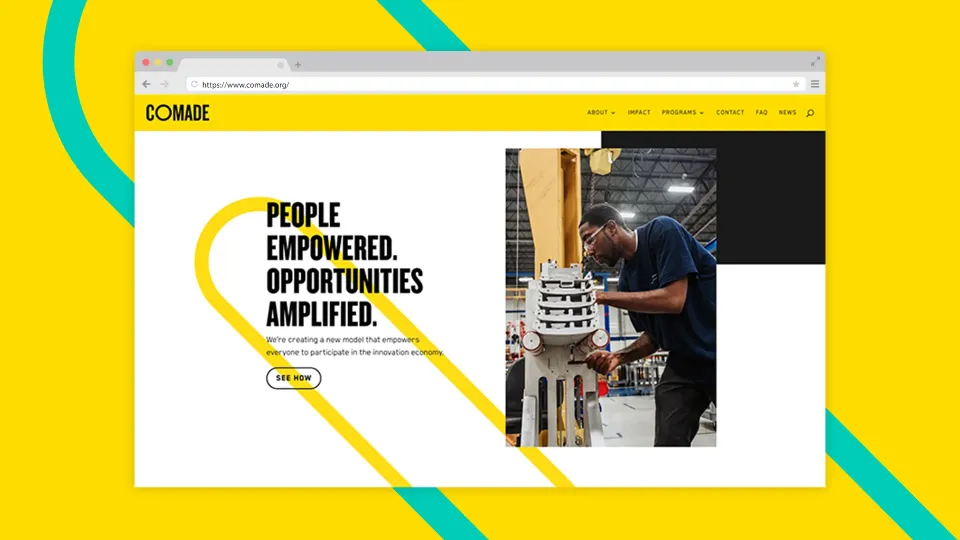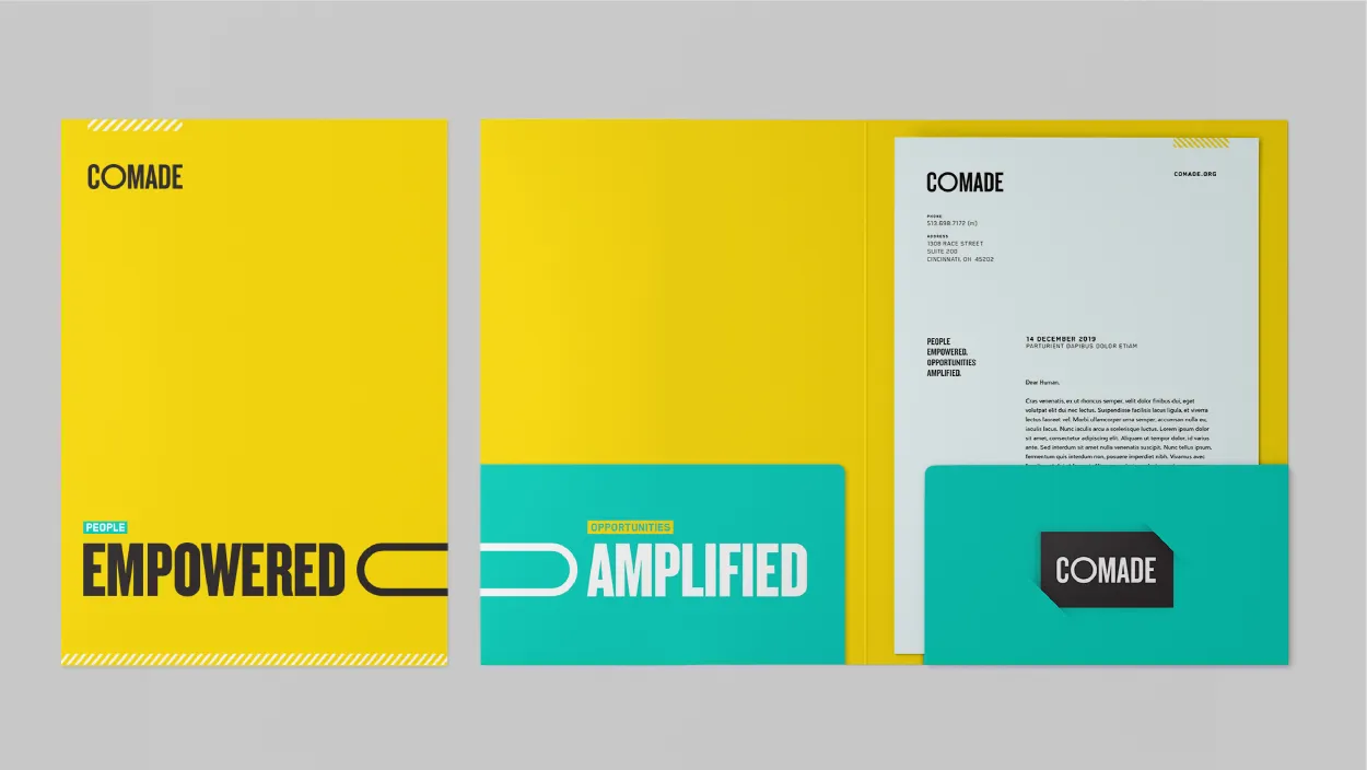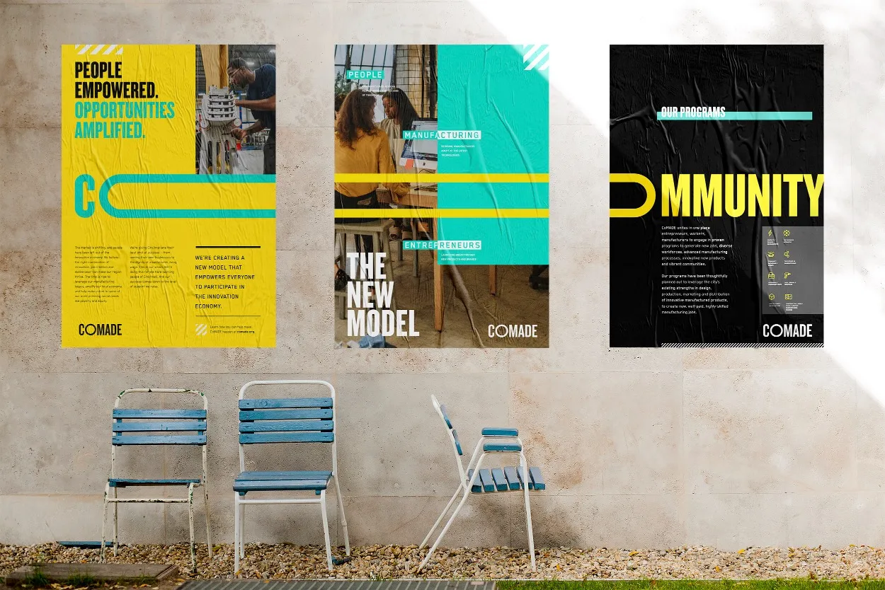 The Result? A unique, living, breathing brand was created in order to create intrigue, showcase our spirit of collaboration and bring awareness to this new accelerator program. Alongside the CoMADE founder, a brand was created that fit their mission and subsequent investor presentations, a website, building space (an abandoned Kroger) and branded materials were created to bring the brand and company to life.